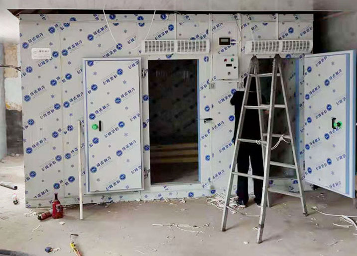 聊城市成諾制冷承建茌平區一拖二熱氟化霜冷庫工程。工程使用熱氟化霜,具有節能,省時,安全可靠,智能化解決了人工除霜的煩惱。